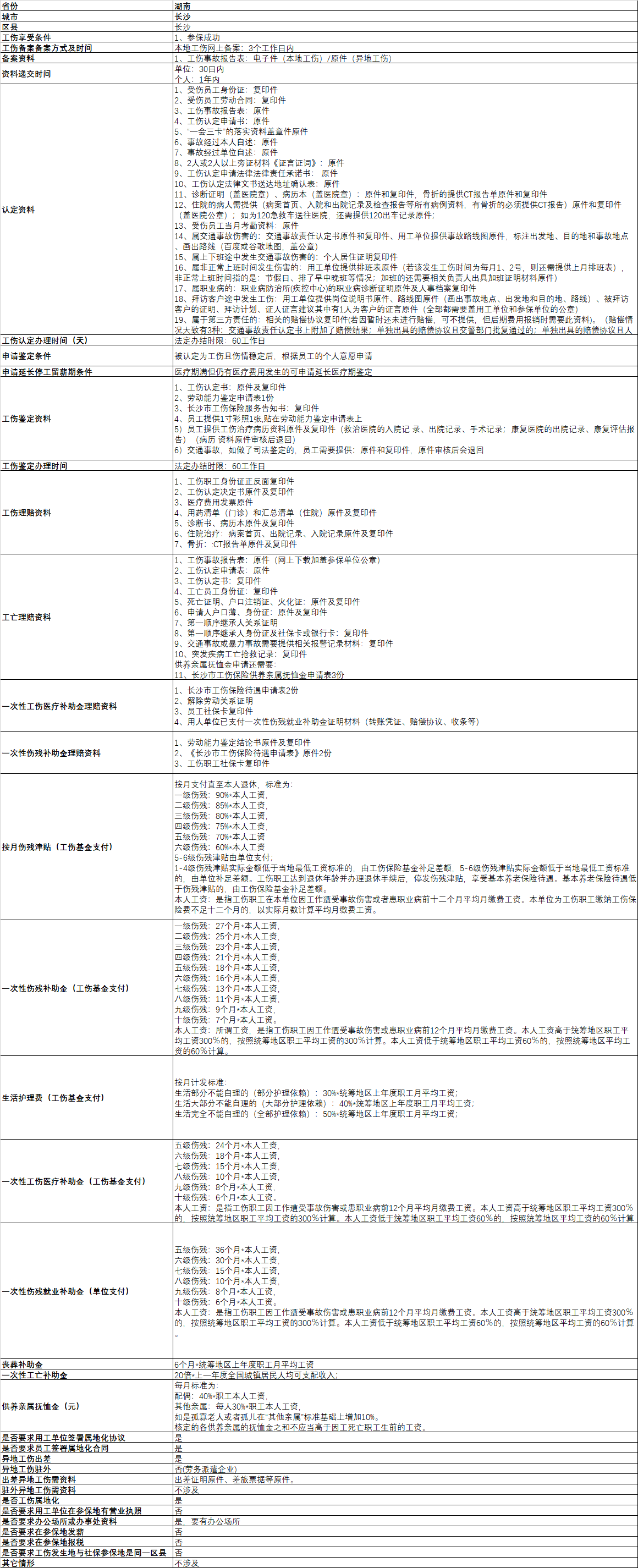 长沙工伤政策一览表