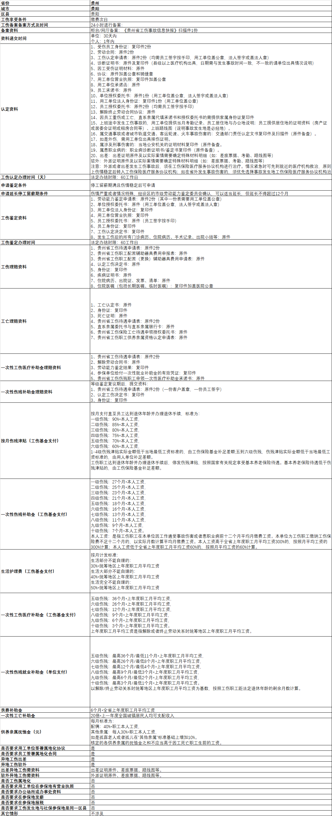贵阳工伤政策一览表