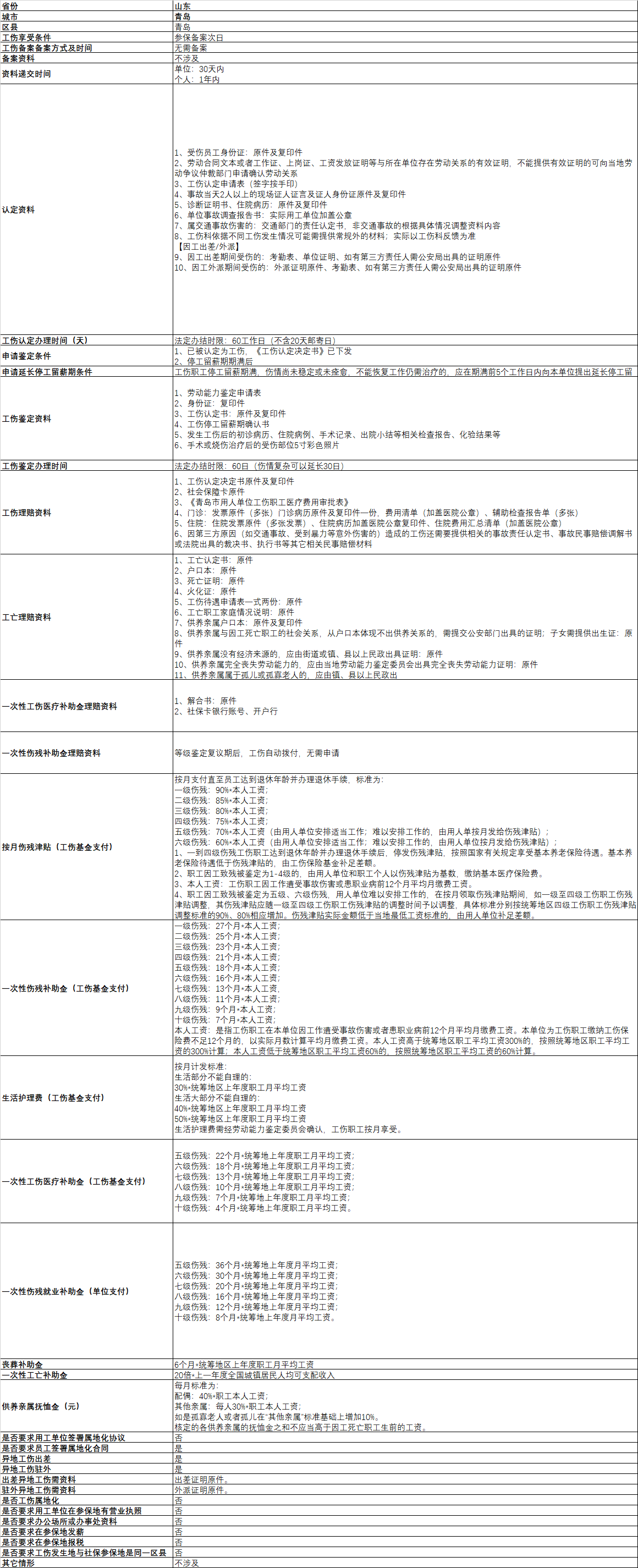 青岛工伤政策一览表