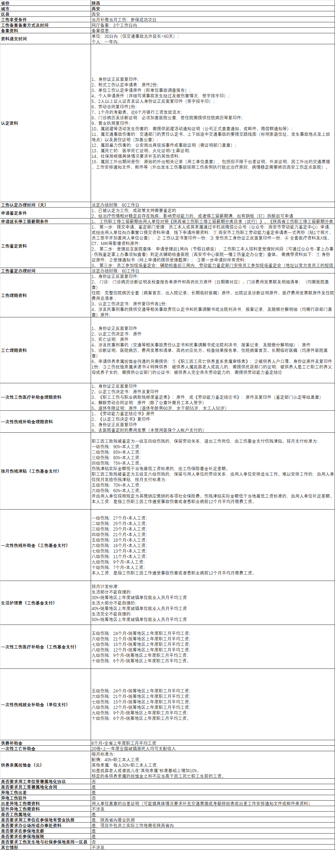 西安工伤政策一览表