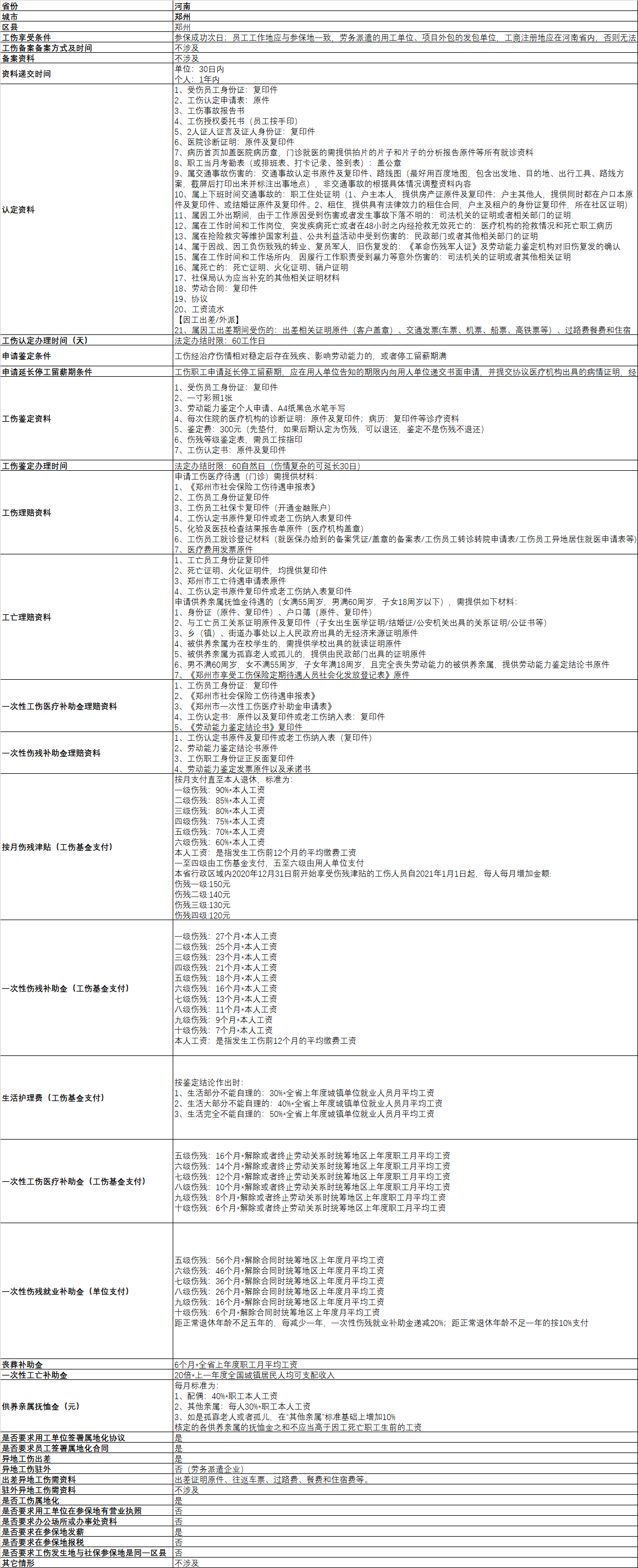 郑州工伤政策一览表